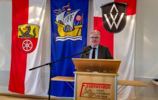 Anschließend sprach Bürgermeister Dr. Bernd Blisch zu den Anwesenden. Auch er dankte für die vielen Stunden Dienst in der Feuerwehr und die damit verbundene Sicherheit für alle Bürgerinnen und Bürger in der Stadt Flörsheim am Main. Er sagte der Feuerwehr auch künftig die Unterstützung durch die städtischen Gremien zu.