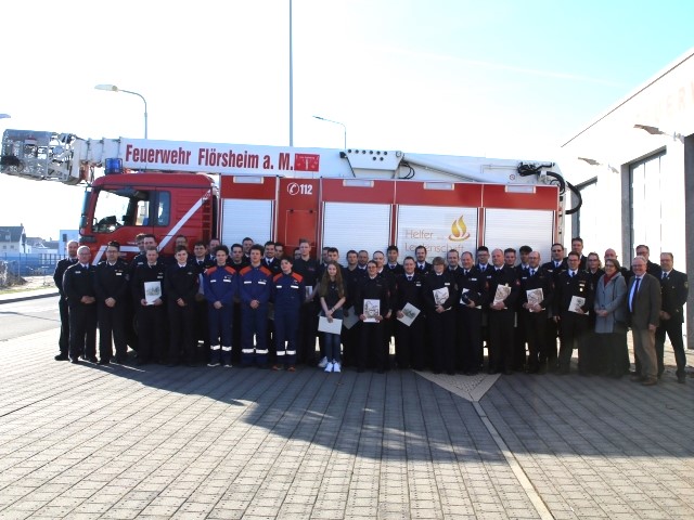 Dies alles erfolgt ehrenamtlich neben der eigentlichen beruflichen Tätigkeit und auch die heutigen Beförderungen sind für die Einsatzkräfte nur ein äußerliches Zeichen und nicht mit einer besseren Gehaltsklasse verbunden. Kaschel dankte den Kreisausbildern, von denen auch einige aus den Flörsheimer Feuerwehren kommen, für ihre Tätigkeit und insbesondere auch den Familien der Feuerwehrleute für die Unterstützung. Besonders freute sich der Stellv. Stadtbrandinspektor über die Entwicklung vieler Kameradinnen und Kameraden von den Kinderfeuerwehren über die Jugendfeuerwehren bis in die Einsatzabteilungen. Dabei sei man sehr stolz darauf, wie aus Jugendlichen richtig tolle Feuerwehrleute würden.