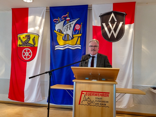 Anschließend sprach Bürgermeister Dr. Bernd Blisch zu den Anwesenden. Auch er dankte für die vielen Stunden Dienst in der Feuerwehr und die damit verbundene Sicherheit für alle Bürgerinnen und Bürger in der Stadt Flörsheim am Main. Er sagte der Feuerwehr auch künftig die Unterstützung durch die städtischen Gremien zu.