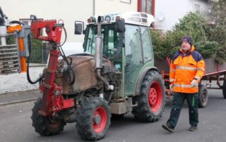 Anhängern und Schleppern, damit alle Bäume zu den Sammelstellen gebracht werden