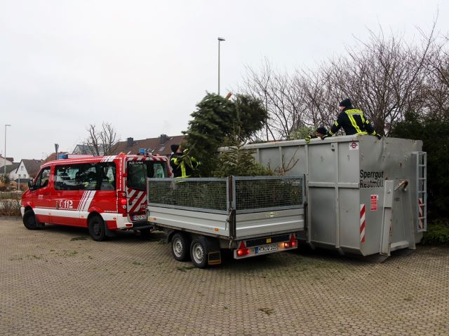 Stadtteilen die ausgedienten Weihnachtsbäume, durch die Jugendlichen und